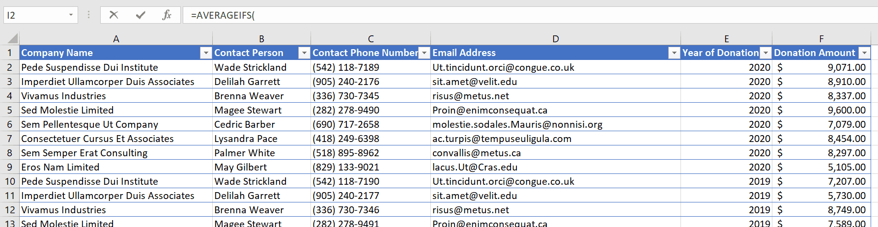 Final Exam for Intermediate Excel Class (June 8 – July 6)